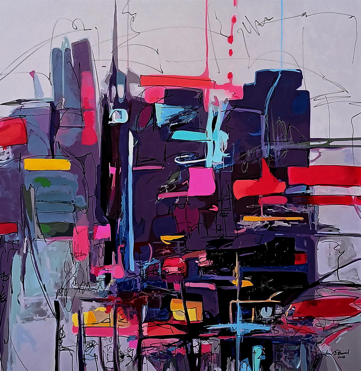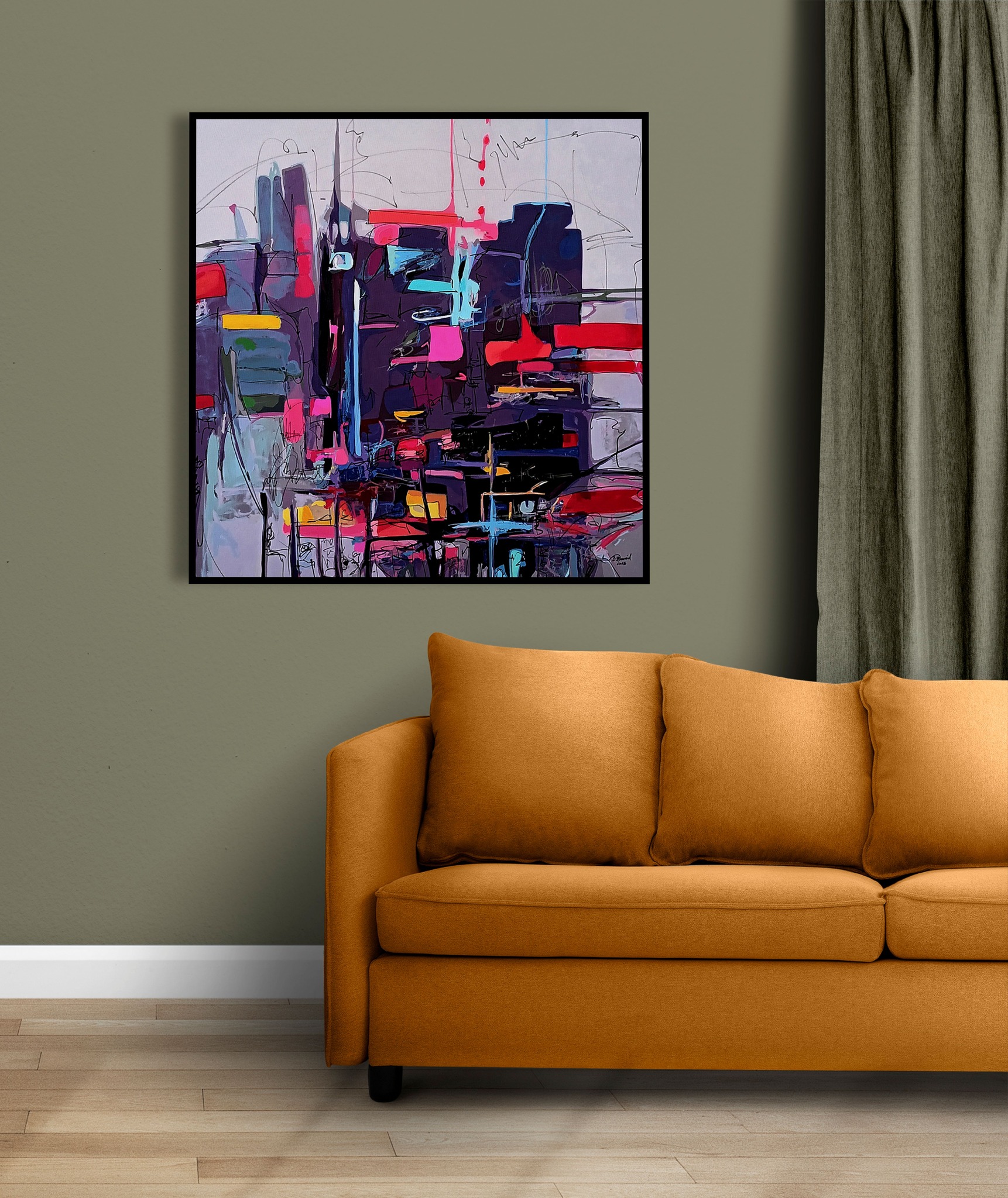 The Colors of the Cityis a vibrant explosion of urban energy, a visual symphony where shapes and colors intertwine in an abstract impressionistic dance. The work pulsates with life, reflecting the organized chaos of the metropolis, where unconventional lights creep through deep shadows.